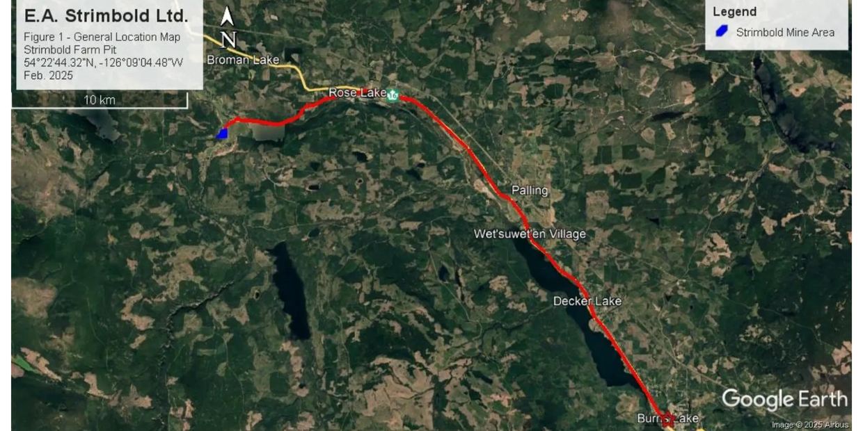 E.A. Strimbold Ltd. owns and operates an aggregate source approximately 30 km west of Burns Lake, BC. Situated on private agricultural land just off Highway 16, this permitted site supports regional infrastructure development with a reliable supply of sand and gravel.